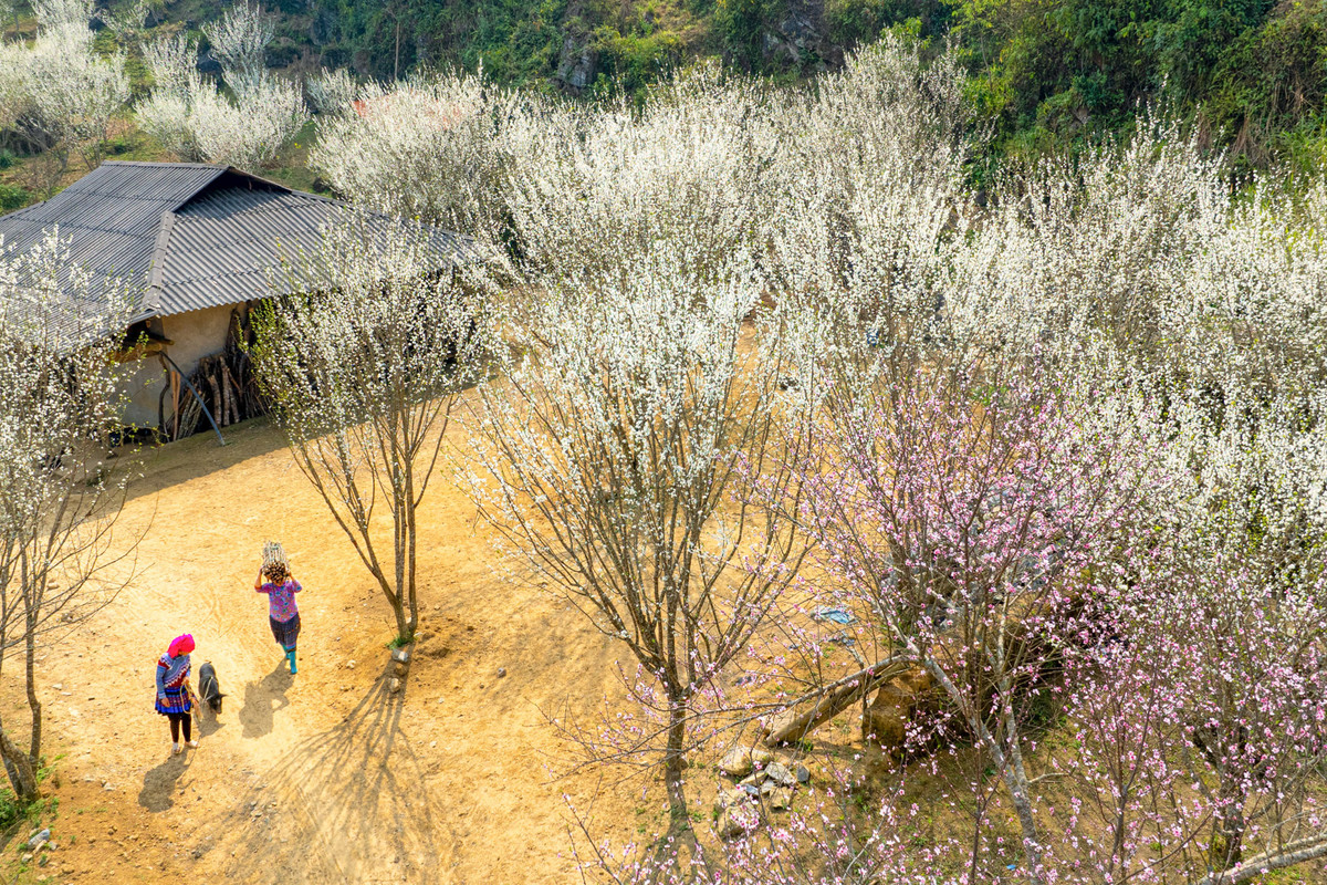Cách thị trấn Bắc Hà, tỉnh Lào Cai khoảng 16km về phía Tây Bắc, xã Tả Van Chư những ngày này đẹp mơ màng khi cả vùng hoa mận nở bung, trắng muốt.