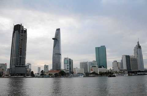 | Saigon One Tower (ngoài cùng bên trái) cùng Bitexco, Saigon Times Square và Vietcombank Tower là cụm 4 tòa nhà cao nhất TP HCM tạo điểm nhấn đặc biệt cho khu vực trung tâm thành phố. Ảnh: Lê Quân. |