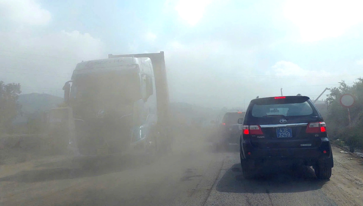 Những ngày trời nắng, mỗi khi có xe chạy qua là bụi bốc lên mù mịt, bao phủ cả một vùng. Bụi không chỉ làm hạn chế tầm nhìn của tài xế mà còn tỏa ra các khu dân cư, xộc thẳng vào nhà dân, gây ô nhiễm môi trường nghiêm trọng.