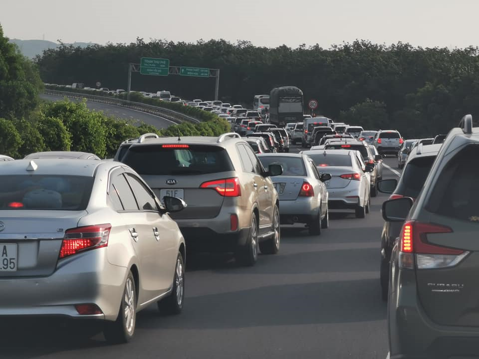 Tình trạng ùn tắc kéo dài khoảng 3km. (Ảnh: Tân Nguyễn)