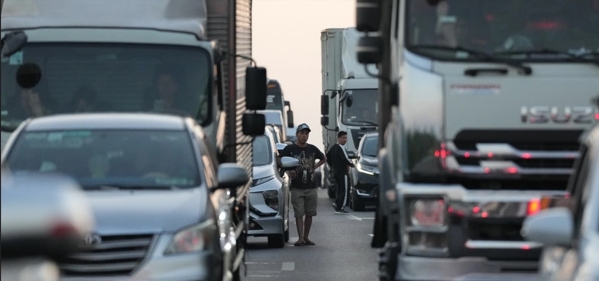 Từ địa bàn huyện Cái Bè đã kẹt xe kéo dài đến huyện Cai Lậy, tỉnh Tiền Giang.