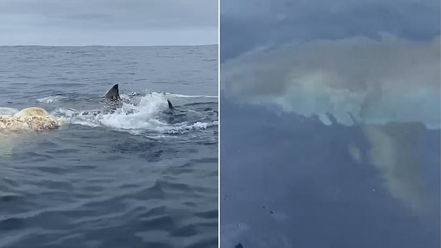 Ngư dân người Australia cho biết, anh thường xuyên bắt gặp lũ cá mập trong các chuyến ra khơi nhưng chưa bao giờ thấy chúng rỉa xác cá voi như vậy. Sau khi kết thúc bữa ăn no nê của mình, đôi cá mập lặn xuống nước và mất tích dưới làn nước không một dấu vết.
