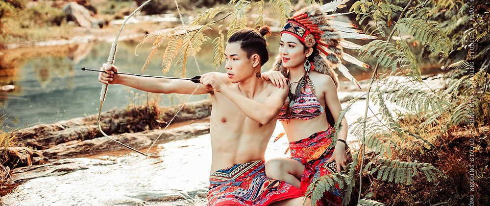 Cô dâu và chú rể tạo hình với mong muốn tạo được bộ ảnh thổ dân ấn tượng nhất.