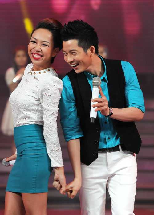 | Thảo Trang và NTK Thuận Việt hát khá thoải mái. |