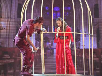 Vai cô vũ nữ xinh đẹp Esmeralda cũng đã từng được Đoan Trang thể hiện cùng “thằng gù Quasimodo” Y Garia trong đêm nhạc mang chủ đề Notre Dame de Paris (Thằng gù nhà thờ Đức Bà Paris) vào tháng 4/2011. Nhưng với trích đoạn Con chim son trong chiếc lồng diễn cảnh nàng Esmeralda bị tên cha xứ giam cầm và được thằng gù Quasimodo cứu thoát, Đoan Trang – Trấn Thành đã sáng tạo để cho 2 nhân vật nhìn thấy nhau và cảnh thằng gù bị bọn lính bắt khác với nội dung vở kịch. Cả 2 đã đầu tư rất công phu khi đem nguyên chiếc lồng sắt lên sân khấu và tái hiện không gian kịch rất sinh động. Không gian kịch sinh động của Đoan Trang - Trấn Thành