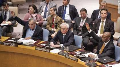 Đại diện Mỹ, Anh, và Pháp đã không giấu cơn giận dữ trước việc nghị quyết không được thông qua ngay cả khi đã được 13/15 nước thành viên HĐBA tán thành.