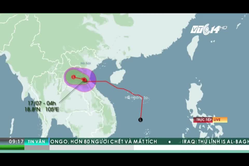 17/07/2017 11:38:00 +07:00Sau khi đổ bộ vào các tỉnh ven biển từ Thanh Hóa đến Hà Tĩnh, cơn bão số 2 đã di chuyển sang phía Tây và suy yếu thành một vùng áp thấp trên khu vực Trung Lào.