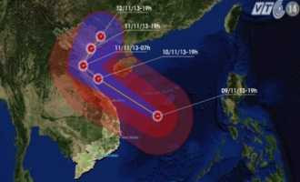 (VTC News) - Quỹ đạo di chuyển của bão số 14 đã có sự thay đổi so với các bản tin dự báo bão trước đây. Trong đêm nay và sáng mai bão vẫn di chuyển dọc theo ven biển các tỉnh Trung Trung Bộ đến Bắc Trung Bộ. Sau đó bão Haiyan có khả năng đổi hướng di chuyển vào khu vực các tỉnh Bắc Trung Bộ hoặc Nam đồng Bằng Bắc Bộ.