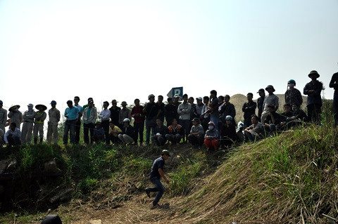 | Rất đông người tập trung mong ngóng tin từ đội thợ lặn |