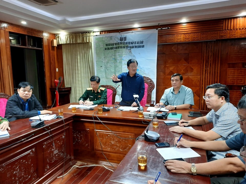 22h ngày 28/10, tại Bộ Chỉ huy Quân sự tỉnh Quảng Nam, Phó Thủ tướng Trịnh Đình Dũng, Bộ trưởng Bộ NN&PTNT Nguyễn Xuân Cường, Bí thư Tỉnh ủy Phan Việt Cường, Chủ tịch UBND tỉnh Lê Trí Thanh, lãnh đạo Bộ Chỉ huy Quân sự tỉnh và các ngành họp khẩn về vụ sạt lở kinh hoàng tại xã Trà Leng (Nam Trà My) vùi lấp nhiều nhân mạng.