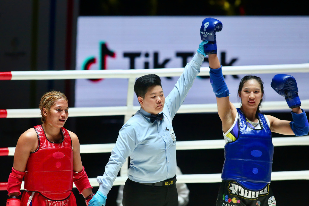 Nguyễn Thị Phương Hậu thắng Areeya Sahot (Thái Lan) ở cả 3 hiệp đấu của trận chung kết nữ hạng cân 60 kg.