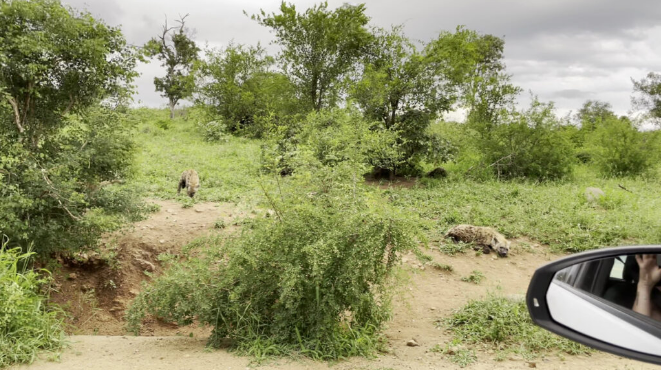 Tuy nhiên, do nghe thấy tiếng đồng loại tháo chạy tán loạn, con linh cẩu tỉnh giấc và bỏ chạy theo đàn.