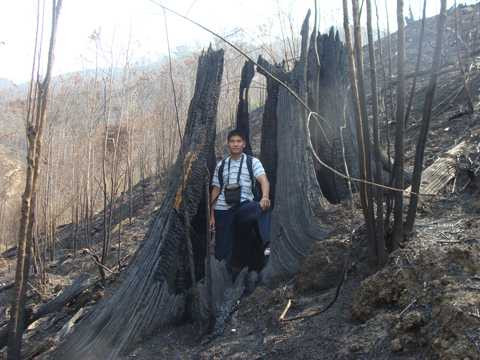 Bản thân tôi, đã có ngót ngày trời đi bộ miên man qua khu rừng chết, cả thung lũng mênh mông những thân cây khổng lồ ngã gục đen sì bởi lửa. Những thân cây vẫn sừng sững, vươn cánh tay đen như than kíp lê giữa nền trời trong vắt, trồi lên khỏi thảm trúc xanh rì. Vụ cháy rừng năm ấy đã thiêu trụi cả ngàn héc-ta rừng nguyên sinh trên dãy Hoàng Liên Sơn. Và, theo ông Trần Ngọc Lâm, thì ngọn lửa năm ấy phát ra từ con đường chinh phục Fan từ hướng bản Cát Cát. Mãi mãi không tìm ra thủ phạm. Không rõ là do người đốt nương, người sấy thảo quả, hay do khách du lịch vô ý thức đốt lửa sưởi ấm mà nướng luôn cả rừng.