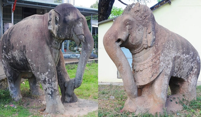 Đây là 2 tượng voi đá được tạc dưới dạng tượng tròn, có kích thước lớn nhất của người Champa được phát hiện từ trước đến nay.
