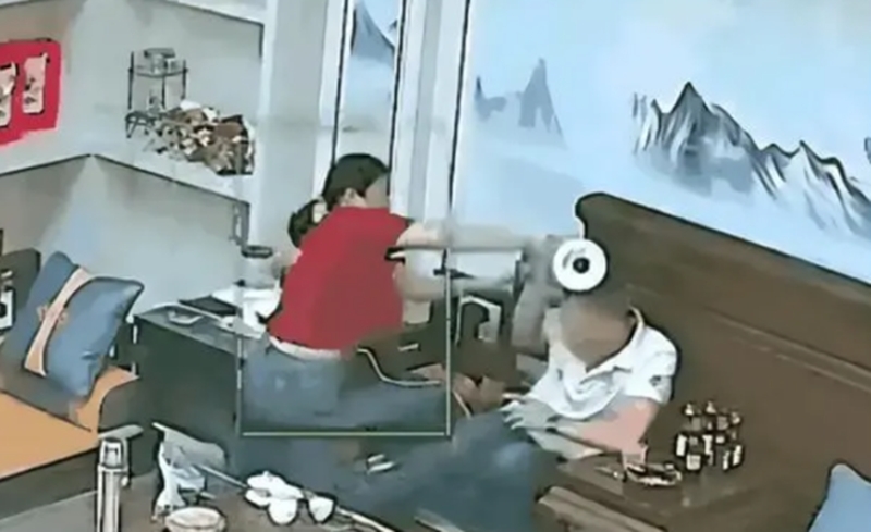 Theo truyền thông Trung Quốc, sự việc xảy ra ở tỉnh Chiết Giang. Clip được chia sẻ cho thấy người chồng (mặc áo trắng trong hình dưới) đang ngồi ở ghế dài với gương mặt cau có; người vợ (mặc áo đỏ) đứng cạnh đó đun nước, có vẻ như muốn pha trà. Nào ngờ, lúc nước vừa sôi, người vợ cầm lấy ấm, dội bằng hết chỗ nước sôi vào đầu chồng.