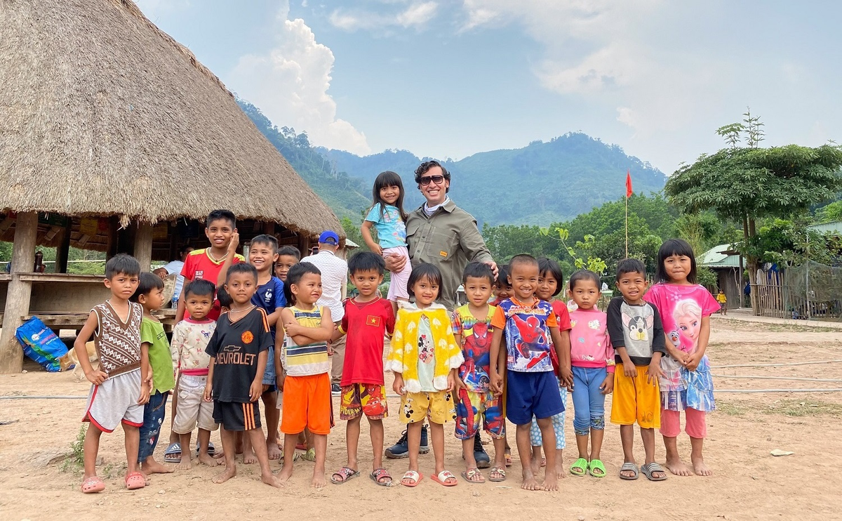 Wandi chụp ảnh kỷ niệm với trẻ vùng cao ở Quảng Nam trong một chuyến từ thiện. (Ảnh: NVCC)