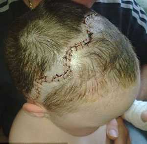Một cuộc phẫu thuật lớn đã được diễn ra với những vết cắt theo hình zíc zắc từ tai này đến tai kia. Sau đó em đã buộc phải đội nón bảo hiểm trong suốt 6 tháng vì hộp sọ vẫn còn cực kỳ mong manh và có thể dẫn tới hư tổn nghiêm trọng. Mọi góc nhọn trong nhà đã được loại trừ để bảo vệ em.
