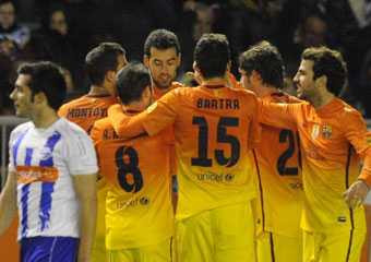 Đúng như nhiều người dự đoán, nhằm giữ sức cho một số cầu thủ quan trọng như Messi, Xavi, HLV Tito Vilanova đã sử dụng đội hình hai khi thi đấu với Alaves. Tuy nhiên, vẫn có những cái tên khiến hàng thủ của đội chủ nhà phải phát khiếp mà nổi bật là Iniesta, Sanchez, Fabregas và David Villa.