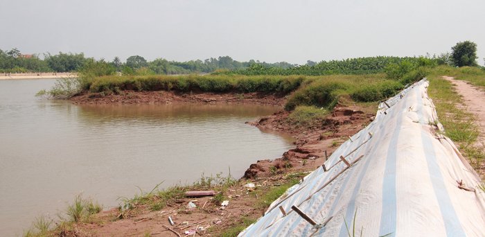 Có những điểm cát tặc hút trộm cát sát chân đê, khiến con đê có nguy cơ sạt lở nghiêm trọng.