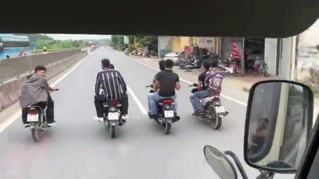Trước đó, sáng cùng ngày, một đoạn clip ghi lại hình ảnh nhóm thanh niên lái xe máy dàn hàng ngang trước đầu một xe ô tô được đăng tải lên mạng xã hội.