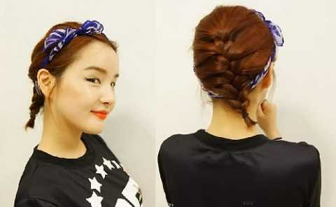 | Bện đuôi sam phần tóc mái và kẹp giấu trong một lớp tóc. |