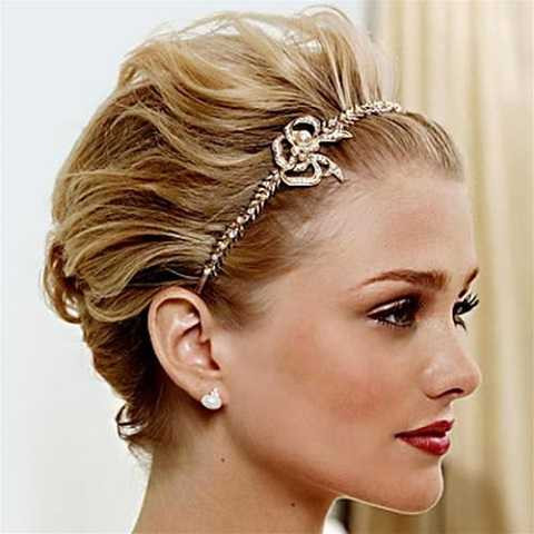 | Tóc vuốt ngược hết ra sau và đeo băng-đô thậm chí nếu chọn băng-đô kiểu cách, yểu điệu, đó sẽ là kiểu tóc cưới cho những cô dâu tóc ngắn và có cá tính mạnh. |