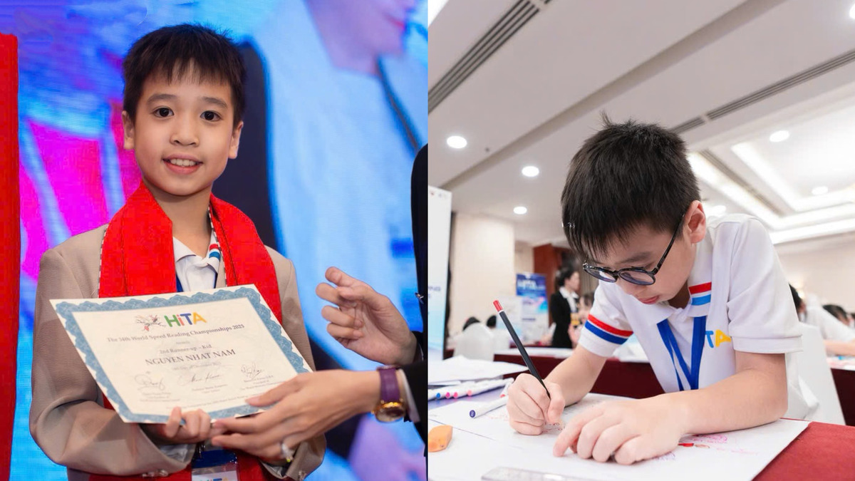 Trong số những gương mặt dự thi, Nguyễn Nhật Nam, học sinh lớp 5 trường Vinschool, giành huy chương đồng ở nội dung Đọc nhanh, là thí sinh nhỏ tuổi nhất của đoàn Việt Nam vinh dự nhận giải thưởng.