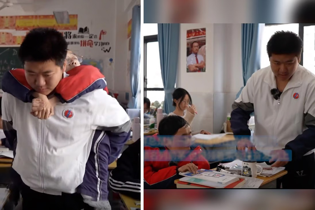 Ngày nào cậu bé Zhu Jinxiang, ở tỉnh Giang Tây, Trung Quốc cũng cõng bạn cùng lớp Zhong Huaqiang tới trường. Hết giờ học, Zhu thường hỏi Zhong xem bạn có cần uống nước hay đi vệ sinh không để cậu giúp.