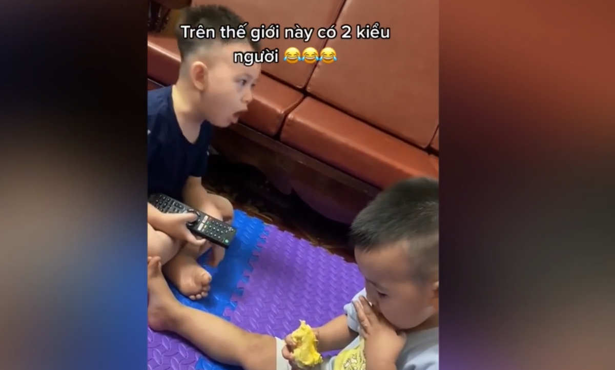 Trong khi cậu em cầm múi sầu riêng ăn ngon lành thì cậu anh ngồi gần đó suýt nôn khi ngửi thấy mùi.