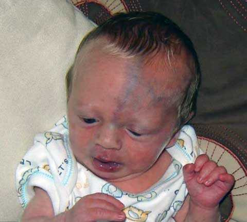 Ngoài ra các u mạch máu còn lan rộng khắm hộp sọ của Ethan giống như những mạch máu bất thường dưới da tạo thành những vệt màu xanh trên mặt và trán của cậu.