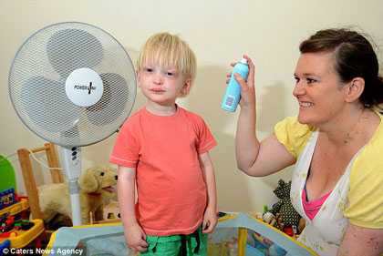 Bố mẹ em, anh Jon James, 39 tuổi và chị Sarah Jones, 33 tuổi, phải làm mọi thứ để cậu con trai của mình luôn trong tình trạng mát mẻ, bằng cách sử dụng quạt, lọ xịt hơi nước hay chườm nước đá.