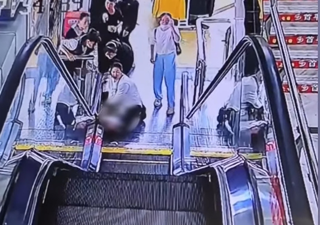 Cậu bé hiếu động bị kẹt tay vào thang cuốn ở Trung Quốc