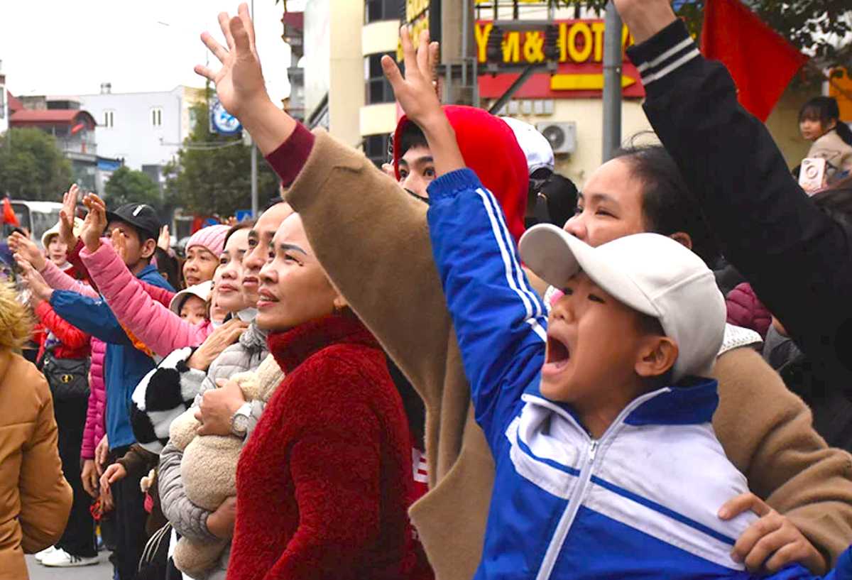 Từ xa lạ tới quen biết, từ người thân tới những người chưa từng biết nhau, mỗi chiếc xe chở tân binh đi qua, hàng nghìn cánh tay lại giơ lên vẫy chào. Nhiều người mẹ, người chị vội vã chạy theo xe con em mình, nhiều người gọi lớn dặn dò các tân binh "giữ gìn sức khoẻ, hoàn thành tốt nghĩa vụ".