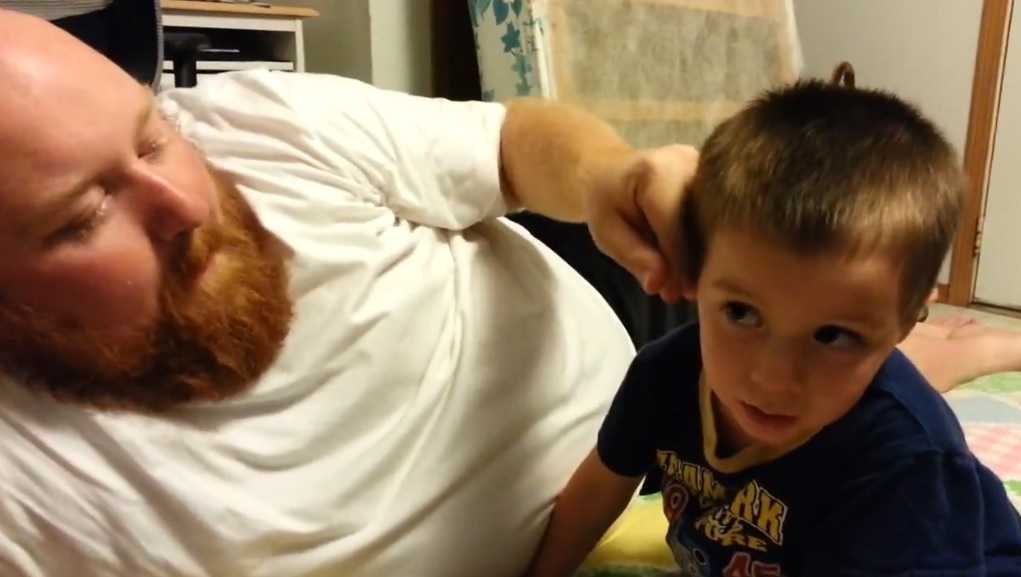 Cậu bé ngây thơ khóc thét vì tưởng bị bố lấy mất tai