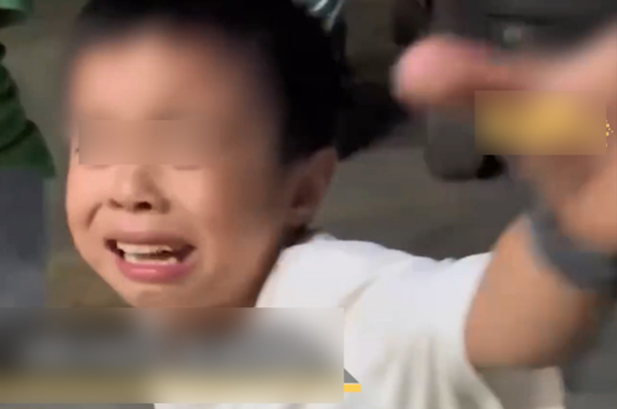 Cậu con trai vì tức giận bố quay hình mình khóc nên đã thẳng tay đập chiếc điện thoại trên tay bố xuống đất.