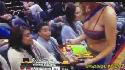 (VTC News) - Cậu bé tròn mắt sửng sốt khi thấy cô gái nóng bỏng mời bánh ngọt trong một trận đấu thể thao.