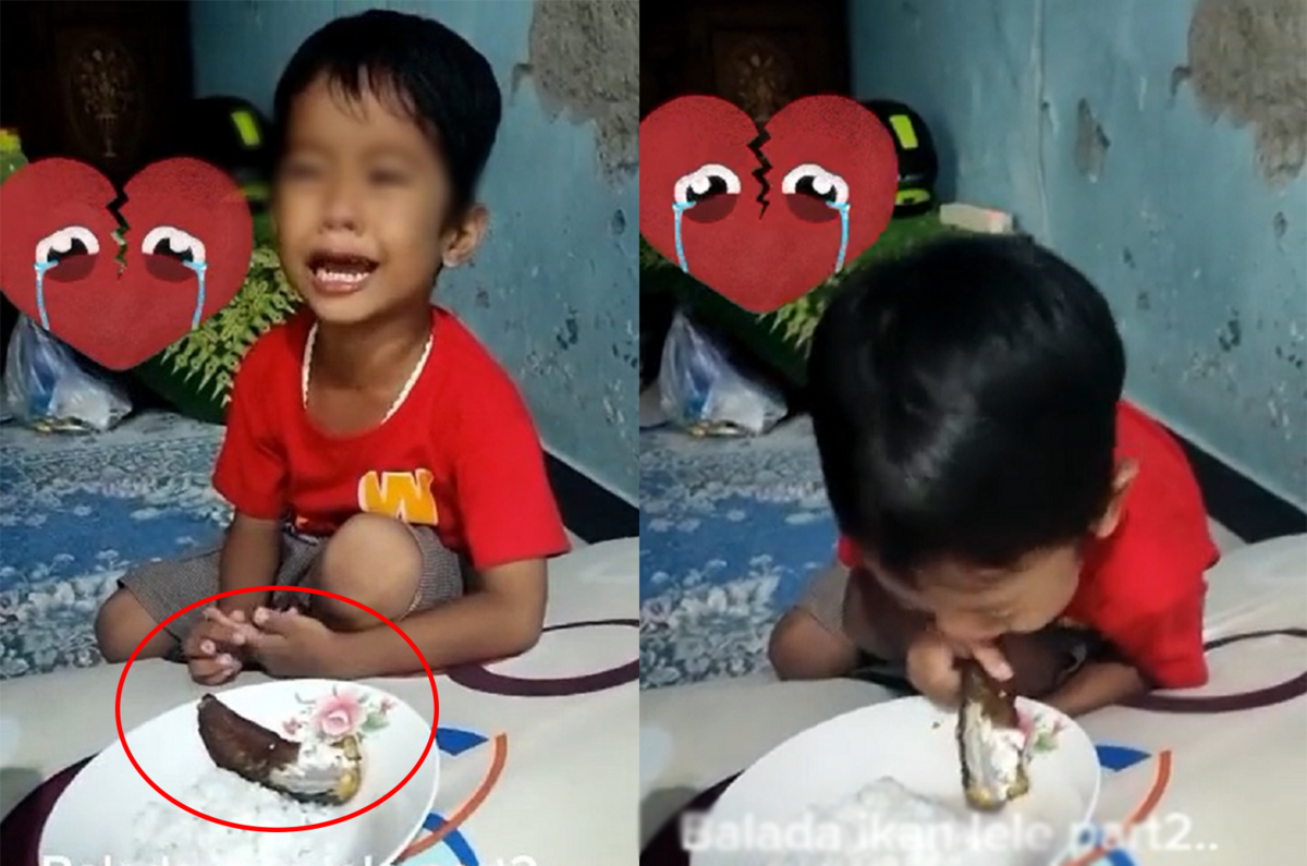 Đoạn video dở khóc dở cười được bố mẹ của cậu bé đăng tải lên mạng xã hội đã thu hút hàng triệu lượt xem. Hình ảnh cho thấy đứa trẻ đã bày tỏ thái độ vô cùng đau buồn trước dĩa cơm với một con cá chiên đang ăn dở một nửa.