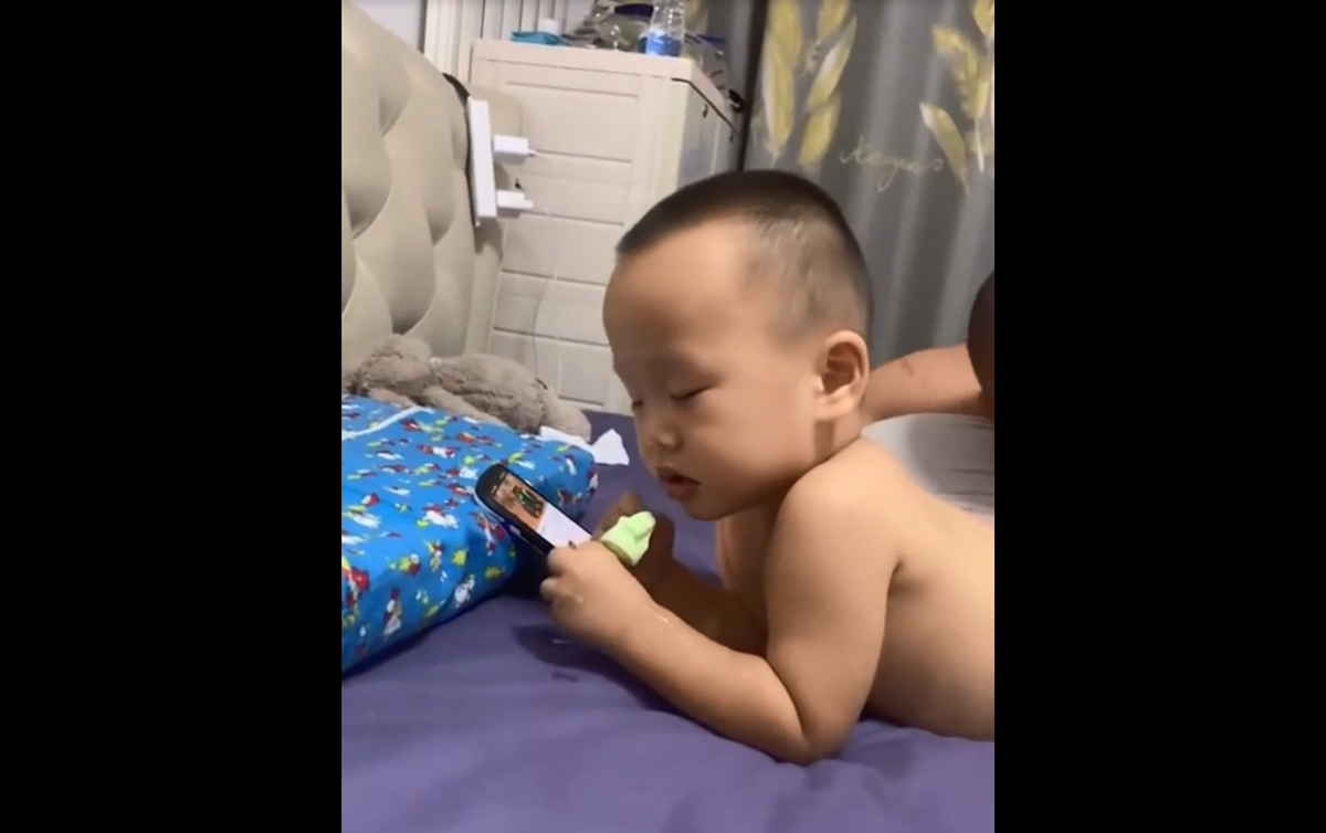 Cậu bé vừa ăn kem vừa ngủ gật