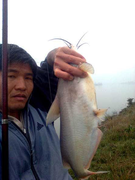 | Tác giả và chú cá ngạnh sông nặng 2kg |