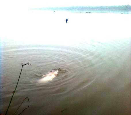 Cần thủ vừa cuốn cước vừa đoán già đoán non con ngạnh này to hay nhỏ. Nó cứ lừ đừ dưới đáy sông nên rất khó đoán. Chỉ khi cá vào sát ven bờ, mới nổi lềnh bềnh trên mặt nước.