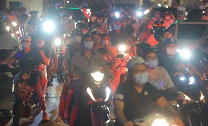 Cảnh người dân đổ ra đường đông nghẹt vào đêm Trung thu 21/9.