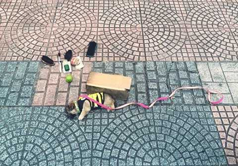 Trong lúc ngồi chơi với anh thấy nhiều bạn gái trai chạy qua gửi anh tiền mua sữa cho con chó. Mỗi người trăm ngàn. Mấy bạn gặp được anh thấy mừng ra mặt. Tuy nhiên, cũng có cô trung niên đi qua buông câu lạnh lùng 'giờ coi bộ khỏi đánh giày cũng có tiền rồi'.