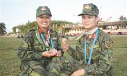“Lúc mới tập bắn súng, mình liên tục bị ù tai bởi âm thanh của đạn nổ và bị viêm họng, mờ mắt vì hít thuốc súng. Nhưng luyện tập nhiều mình cũng quen. Trung bình mỗi ngày tập luyện trên thao trường, mình và đồng đội bắn đến vài trăm viên đạn”, Thượng úy chuyên nghiệp Phạm Thị Hà