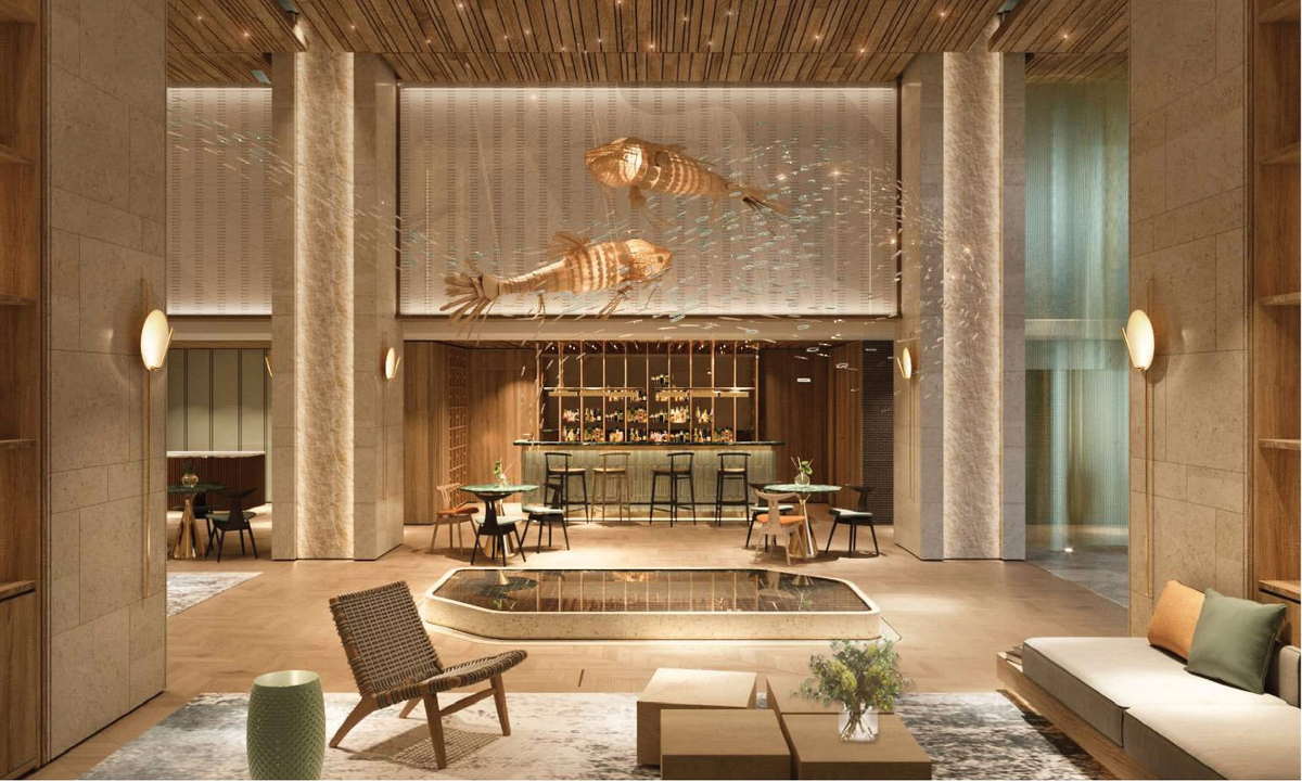 Hình tượng Golden Fish trong phần nội thất sảnh khách sạn tòa Ruby