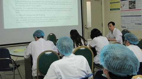 | Bác sĩ Ngô Minh Biên đang giảng bài cho sinh viên và bác sĩ định hướng |