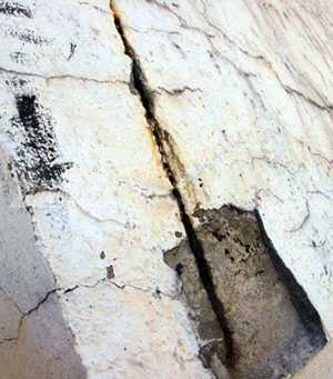 | Cận cảnh một vết nứt trên thân trụ cầu dây võng |
