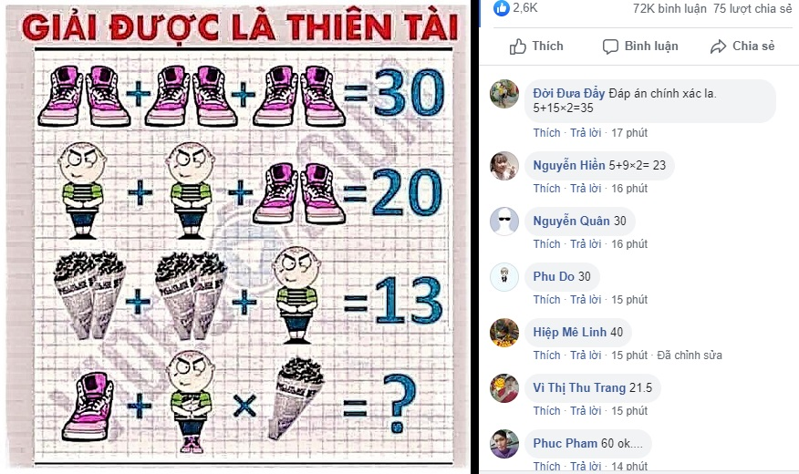 Người đăng tải câu đố kèm dòng trạng thái "Giải được là thiên tài - 99% sẽ trả lời sai" thu hút sự chú ý của nhiều người.