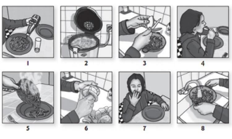 Sắp xếp các hành động dưới đây thành một chuỗi hợp lý trong thời gian ngắn nhất nhé.