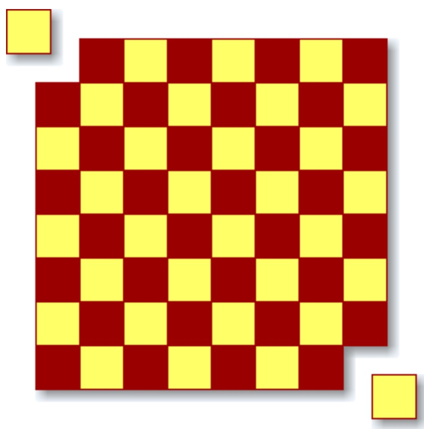 Giả sử chúng ta cắt bỏ 2 hình vuông ở các góc đối diện chéo của bàn cờ (như trong hình minh họa) và loại bỏ một trong những quân cờ Domino.
