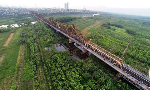 | Cầu đường sắt mới dự định sẽ cách cầu Long BIên 75m |